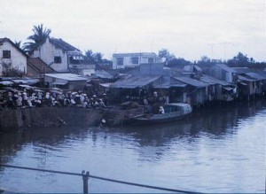 - View from bridge over Song Dinh. This is the likely scene that faced Dave “Johnno” Johnston after waking up the morning following the battle. He recalls the villagers going about their business, washing and urinating in the river! Photos courtesy John Nulty, 3Tp, 1 Fd Sqdn RAE