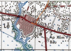 3 platoon reached the beleaguered troops at the US Complex just after 7pm, as the requested helicopter light fire team also arrived. The troops had waited for four hours for the air support, and when it arrived it would have been a very welcome sight. 2Lt Tingley had sufficiently recovered from his earlier injury and directed accurate mini-gun and rocket fire from the gun-ships onto the offending Viet Cong positions. 2Lt Tingley had also regained command of his troop carriers and organised the withdrawal of the two damaged vehicles that the ARVN company had earlier failed to secure. The air strike sufficiently subdued the Viet Cong and allowed the 2 platoon men to escape the house under protective fire from 3 platoon and the APC’s. The damaged vehicles were towed out and the entire force across the town regrouped near the main road before heading west toward the river Song Dinh. The wounded needed to be taken for treatment but safe casualty evacuation points were difficult to find in the built up area. The group halted at the main market place 200m short of the river, which was thought to be a suitable site and a request was put in for the Dust Off.