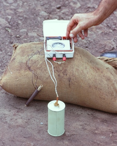Many of the M16 mines had a hand-grenade attached underneath it to hopefully prevent the mine from being lifted, so the VC reasoned ‘Why not use one of the hand-grenades and a trip wire outside the village rather than sharpened bamboo stakes?’ Panji stakes almost disappeared from Viet Cong defences.