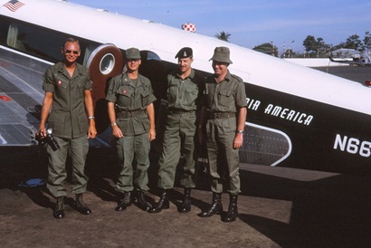 - From the left, Captain Pearson (ARPA), Major Barnard (ARPA), Captain Norm Gomm (FORS), Major Smith (FORS). The team were about to depart by Air America, the CIA’s private airline, to visit a US Special Forces activity