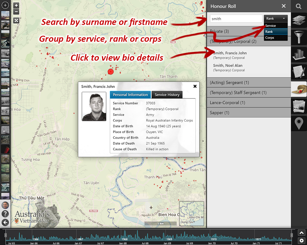 We’re now focused on adding coverage of Royal Australian Navy and Royal Australian Air Force operations during the Vietnam War. This information will be integrated with the Battle Map, joining the already expansive data on the 1st Australian Task Force and 1st Royal Australian Regiment Battalion Group. It is anticipated the first features incorporating this data will be released in early 2017.